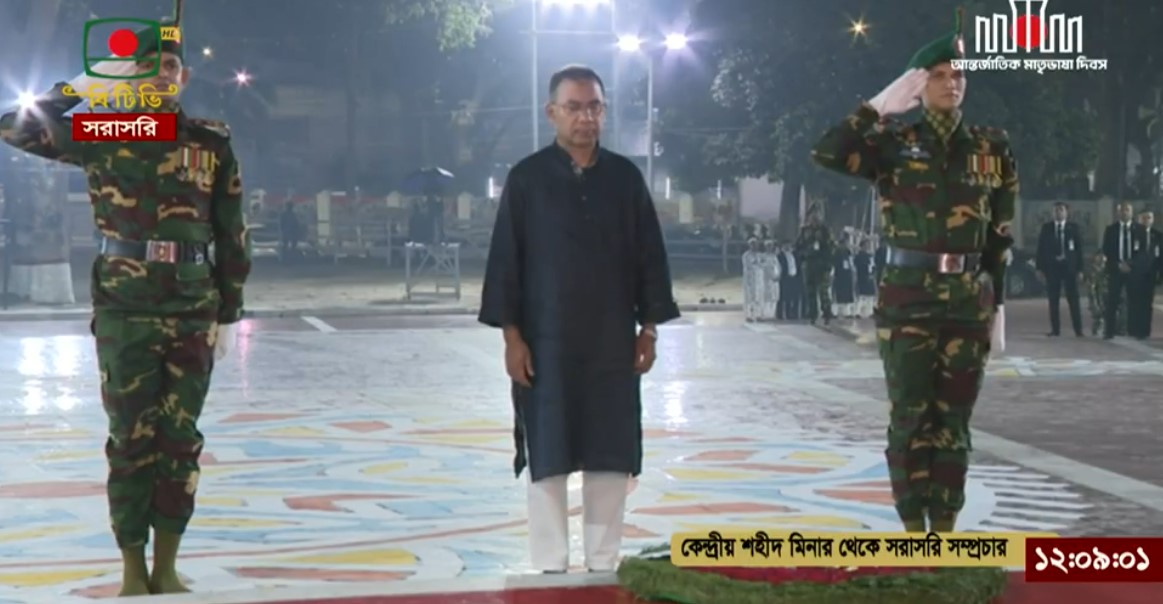 ‘মহান শহীদ দিবস’ ও ‘আন্তর্জাতিক মাতৃভাষা দিবসে’ ভাষা শহীদদের প্রতি শ্রদ্ধা নিবেদন করেছেন প্রধানমন্ত্রী তারেক রহমান। শনিবার (২১ ফেব্রুয়ারি) অমর একুশের প্রথম প্রহরে (রাত ১২টা ৭ মিনিটে) কেন্দ্রীয় শহীদ মিনারের বেদিতে পুষ্পস্তবক অর্পণ করেন তিনি। শহীদ বেদিতে পুষ্পস্তবক অপর্ণ শেষে প্রধানমন্ত্রী কিছুক্ষণ নিরবে দাঁড়িয়ে থাকেন। এ সময় বাজানো হয় অমর বিস্তারিত..