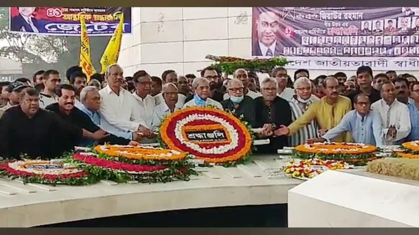 বিএনপির মহাসচিব মির্জা ফখরুল ইসলামের নেতৃত্বে দলের জ্যেষ্ঠ নেতারা ও অঙ্গ দলের নেতাকর্মীরা জিয়াউর রহমানের সমাধিতে ফুল দিয়ে শ্রদ্ধা নিবেদন করেন। এতে অংশ নেন বিএনপির স্থায়ী কমিটির সদস্য ড. খন্দকার মোশাররফ হোসেন, নজরুল ইলাম খান, ভাইস চেয়ারম্যান ডা. এ জেড এম জাহিদ হোসেন, চেয়ারপারসনের উপদেষ্টা আবদুস সালাম, আমান উল্লাহ আমান, আবুল খায়ের ভুইয়া, বিএনপি সিনিয়র যুগ্ম মহাসচিব অ্যাডভোকেট রুহুল কবির রিজভী, বিএনপিনেতা খয়ারুল কবির খোকন, আবদুস সালাম আজাদ, শহীদ উদ্দিন চৌধুরী এ্যানী, শহিদুল ইসলাম বাবুল, আবদুল কাদির ভূইয়া জুয়েলসহ বিএনপি ও অঙ্গ সংগঠনের নেতাকর্মীরা।