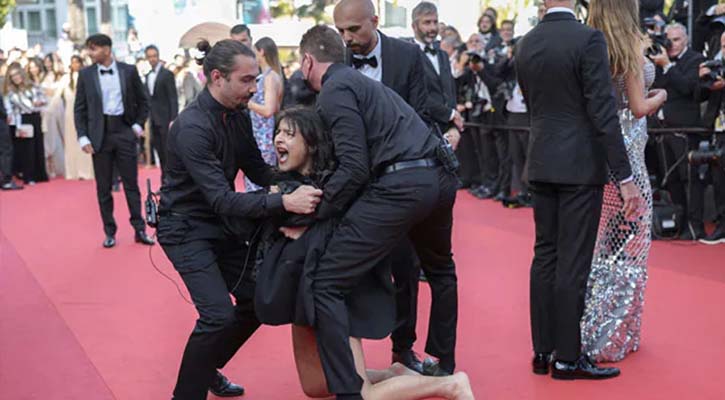ধর্ষণের বিরুদ্ধে কান উৎসবে নগ্ন হয়ে প্রতিবাদ তরুণীর