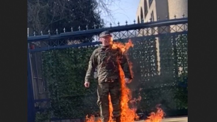 ইসরাইলি দূতাবাসের বাইরে দাঁড়িয়ে ফিলিস্তিনে অবিলম্বে হত্যাযজ্ঞ বন্ধের আহ্বান জানান মার্কিন বিমান বাহিনীর বর্তমান এক সদস্য। পরে ‘ফ্রি প্যালেস্টাইন’ শ্লোগান দিয়ে নিজের গায়ে আগুন ধরিয়ে দেন। এই ঘটনার পরপরই ঘটনাস্থলের কাছাকাছি সন্দেহের তালিকায় থাকা একটি গাড়ি ঘিরে তল্লাশি চালায় বোম্ব স্কোয়াড।