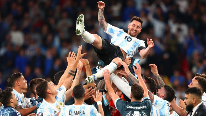 বুধবার রাতে লন্ডনের ওয়েম্বলি স্টেডিয়ামে ফাইনালিসিমায় ইতালিকে ৩-০ গোলে হারিয়েছে আর্জেন্টিনা। শুরুর দিকে লাউতারো মার্তিনেস দলকে এগিয়ে নেয়ার পর ব্যবধান দ্বিগুণ করেন ডি মারিয়া। শেষ দিকে তৃতীয় গোলটি করেন পাওলো দিবালা। তবে তিন গোলে জেতা ম্যাচটিতে লিওনেল মেসি কোনো গোল না করলেও দুটি অ্যাসিস্টের পাশাপাশি চোখধাঁধানো নৈপুণ্যে ম্যাচসেরার পুরস্কার জিতে নিয়েছেন।