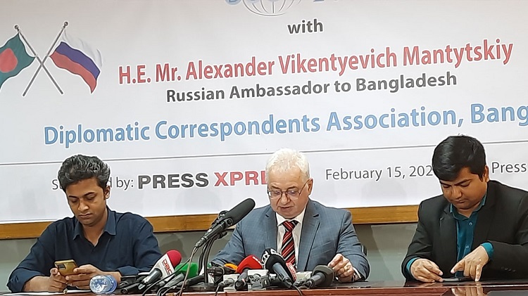 বৃহস্পতিবার (১৫ ফেব্রুয়ারি) সকালে রাজধানীর প্রেসক্লাবে রাশিয়ার রাষ্ট্রদূতের সঙ্গে ডিপ্লোমেটিক করেসপনডেন্টস অ্যাসোসিয়েশন বাংলাদেশ (ডিক্যাব) টকে এমন মন্তব্য করেন রুশ রাষ্ট্রদূত।
