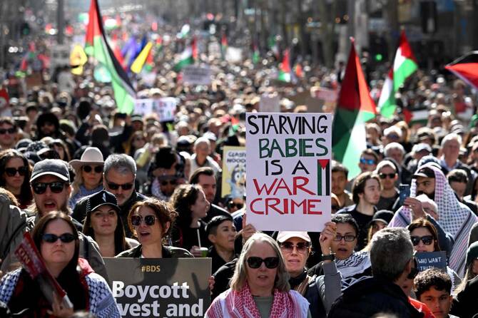 মধ্য-বাম সরকারের ফিলিস্তিনি রাষ্ট্রকে স্বীকৃতি দেওয়ার সিদ্ধান্তের পর ইসরায়েল ও অস্ট্রেলিয়ার মধ্যে সম্পর্কের টানাপোড়েনের মধ্যে হাজার হাজার অস্ট্রেলিয়ান রবিবার ফিলিস্তিনপন্থী