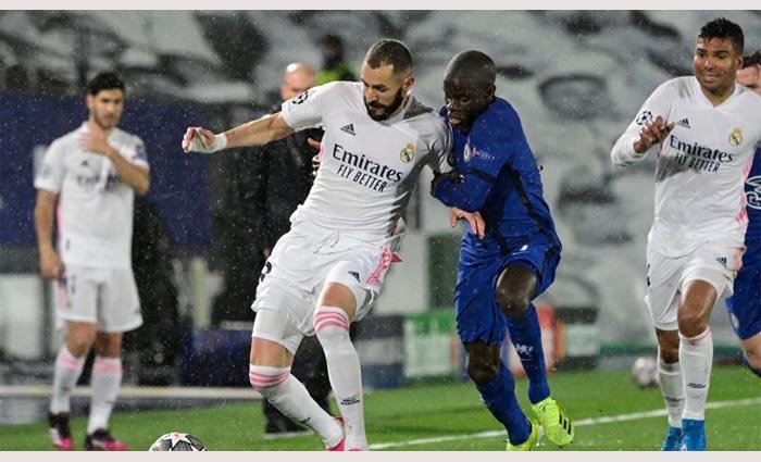 ফরাসি তারকা করিম বেনজেমার হ্যাটট্রিকে বর্তমান চ্যাম্পিয়ন চেলসিকে কোয়ার্টার ফাইনালের প্রথম লেগে ৩-১ গোলে পরাজিত কাে চ্যাম্পিয়ন্স লিগের সেমিফাইনালের পথে